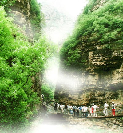 大峡谷纵深六华里,景有五奇:一曰飞流直下:有瀑布高30余米,飞流直下,令人叹为观止,其声于谷中轰响不绝;二曰崖高万丈:谷内高崖,形如壁立,直刺青天,行于其下,直疑其欲倾即倒,心悸胆寒;三曰明潭连珠:谷内有五潭,或清可观鱼,或深不可测,或静若处子,或湍泻奔流,连成一串,为大峡谷添不尽之灵气;四曰栈道悬空:大峡谷狭而曲,陡而险,游览栈道悬于半空,行于其上,顿觉峡谷之险,且增无边情趣;五曰湖明镜清:龙门湖4万平方米,群峰倒映水中,鸥鸭栖身水上,又是一番别样景致,游人嬉水踏浪,泛舟垂钓,好一番归隐之情。