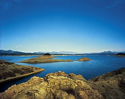 景点描述 亚洲最大的水库,有“燕山明珠”之称。它坐落于燕岭群峰之中,横截潮、白两河,建于1958年9月-1960年9月,全面积188万平方公里,水面137000亩,水深40米至60米,分白河,潮河、内湖三个库区,总蓄水量为4317亿立方米,相当于67个十三陵水库或150个昆明湖,环湖公路110公里,乘车转一圈需三个多小时。